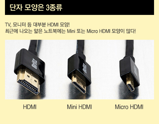 모니터 모두 hdmi단자에 연결하고 pc 데스크탑에는 dvi 와 hdmi로 연결할 거라고 구성했다면 그 다음은 케이블을 구매한다. 일단 hdmi의 단자의 경우 미니hdmi단자 그리고 마이크로hdmi가 있으니 잘 확인하고 hdmi케이블을 구매하자.